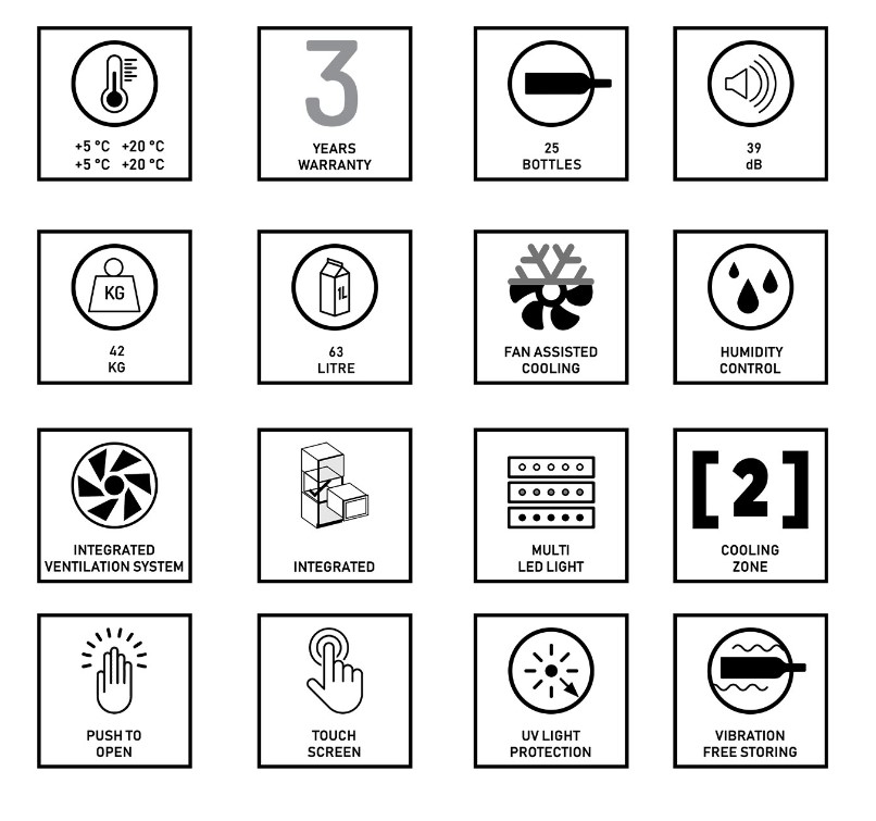 Dvozonski integrirani model s 25 boca s integriranom ventilacijom. Njegov elegantan izgled,