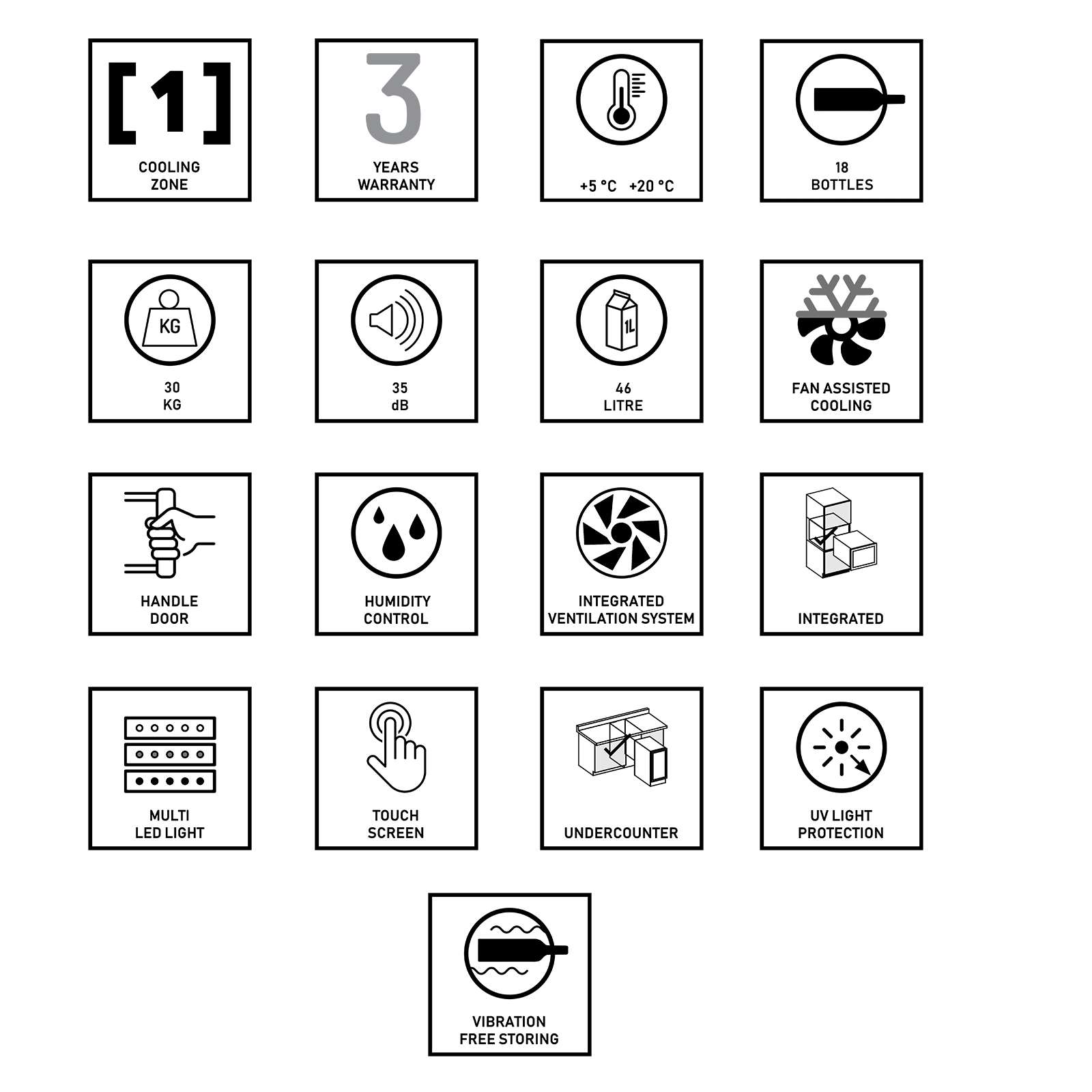 Jednozonski, integrirani model s 18 boca s integriranom ventilacijom. Uz elegantnu vanjštinu i