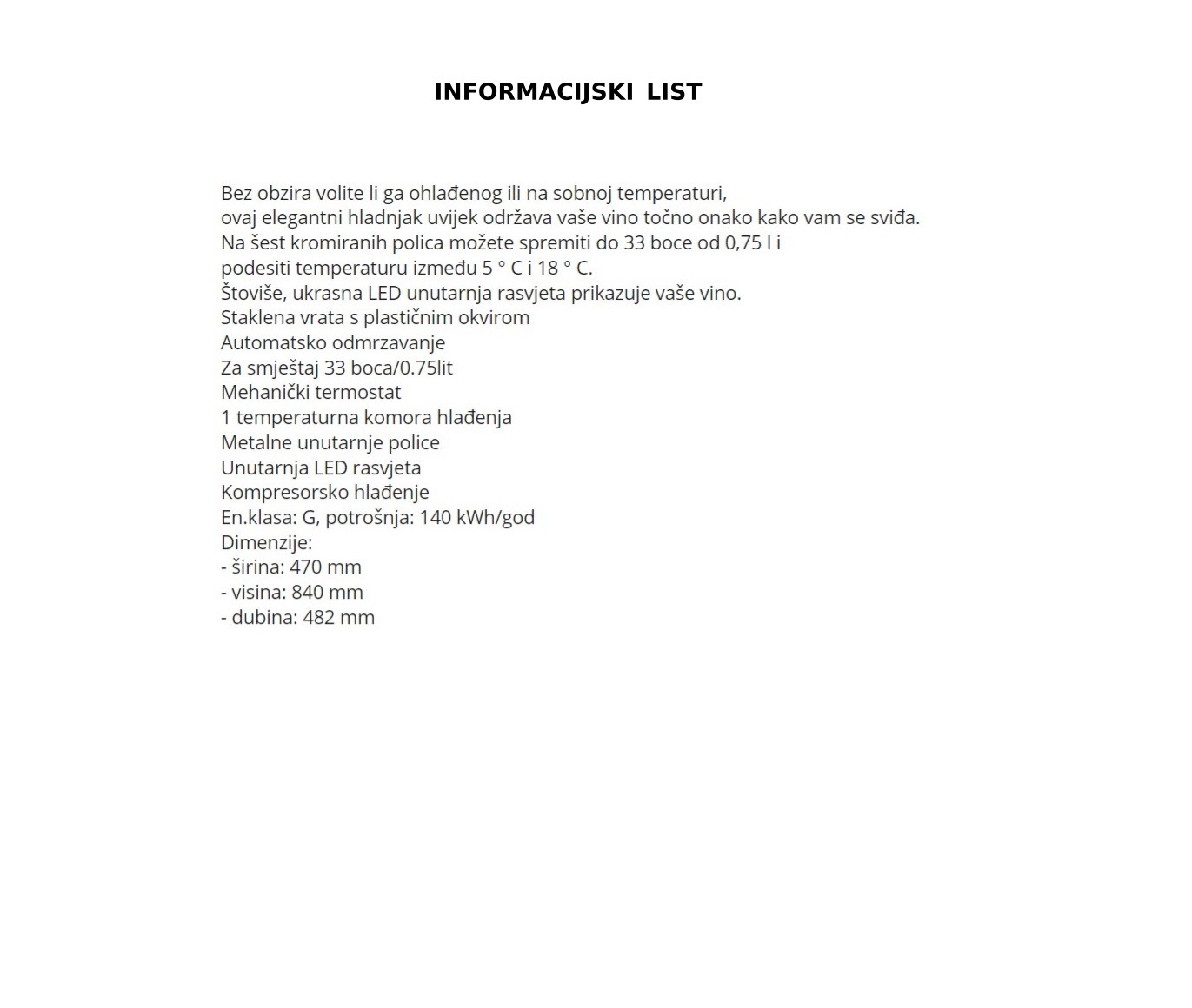 ovaj elegantni hladnjak uvijek održava vaše vino točno onako kako vam se sviđa.