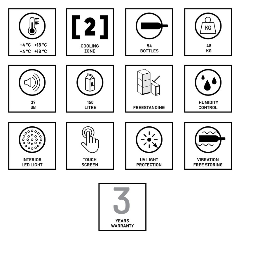 Model s dvije zone hlađenja, za crno i bijelo vino, za 54 boce.