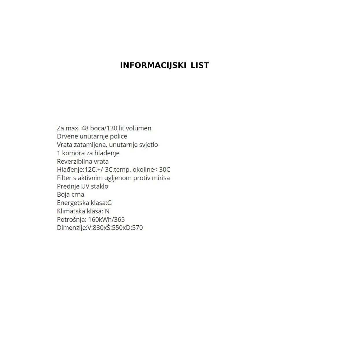 Za max. 48 boca/130 lit volumen