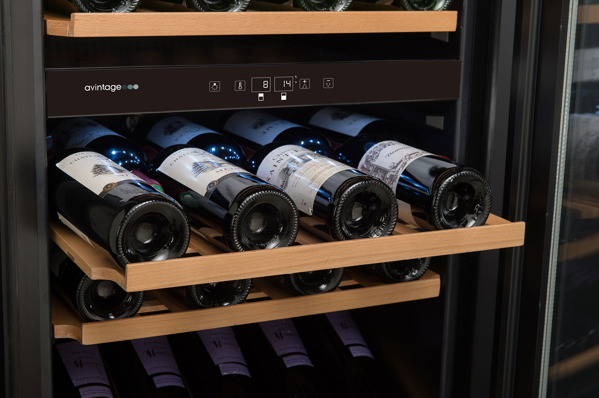 AVI47XDZA ima maksimalni kapacitet od 52 Bordeaux boce koje se nalaze na čvrstim drvenim policama i