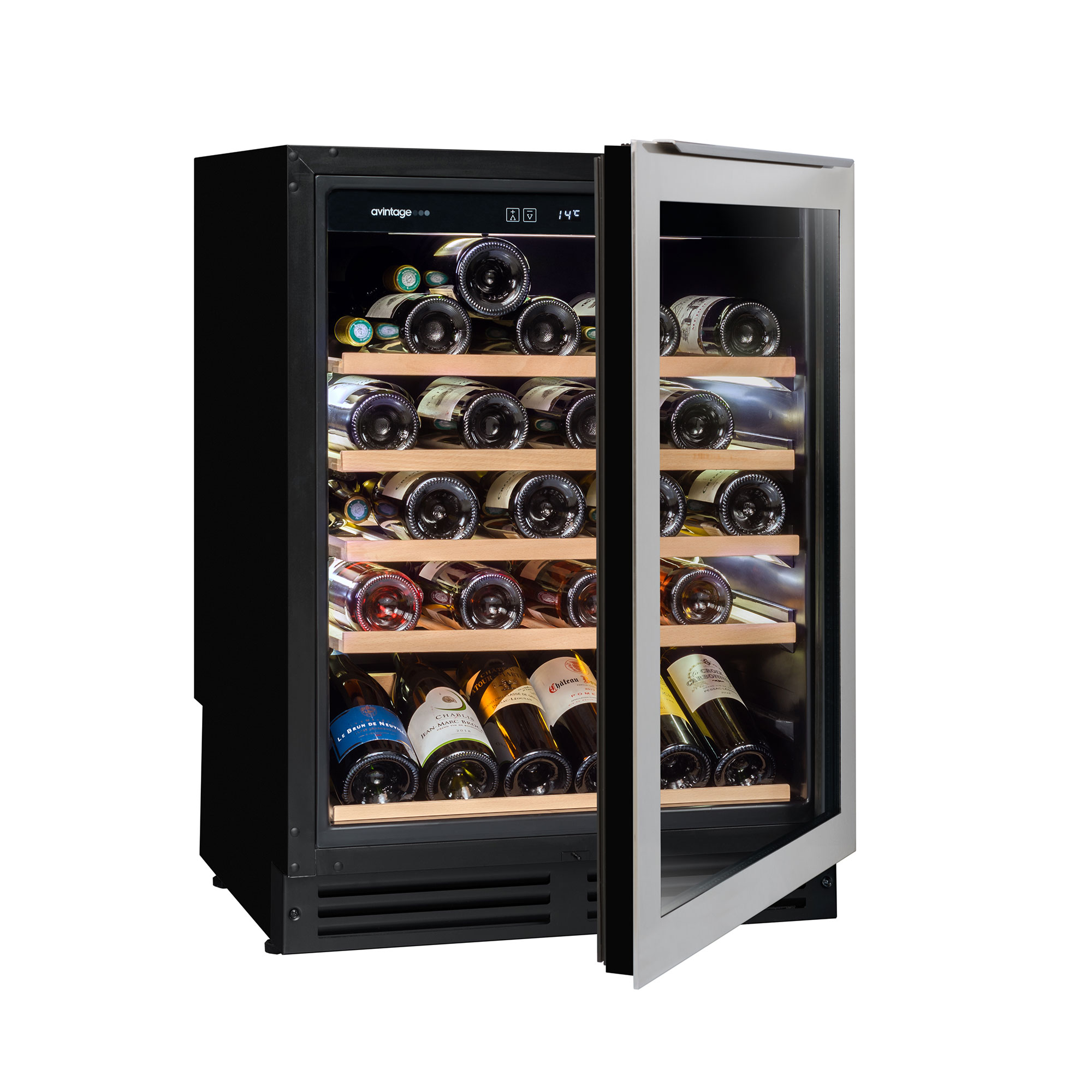 AVU52TX1 ima maksimalni kapacitet od 53 Bordeaux boce, što se može postići slaganjem boca i