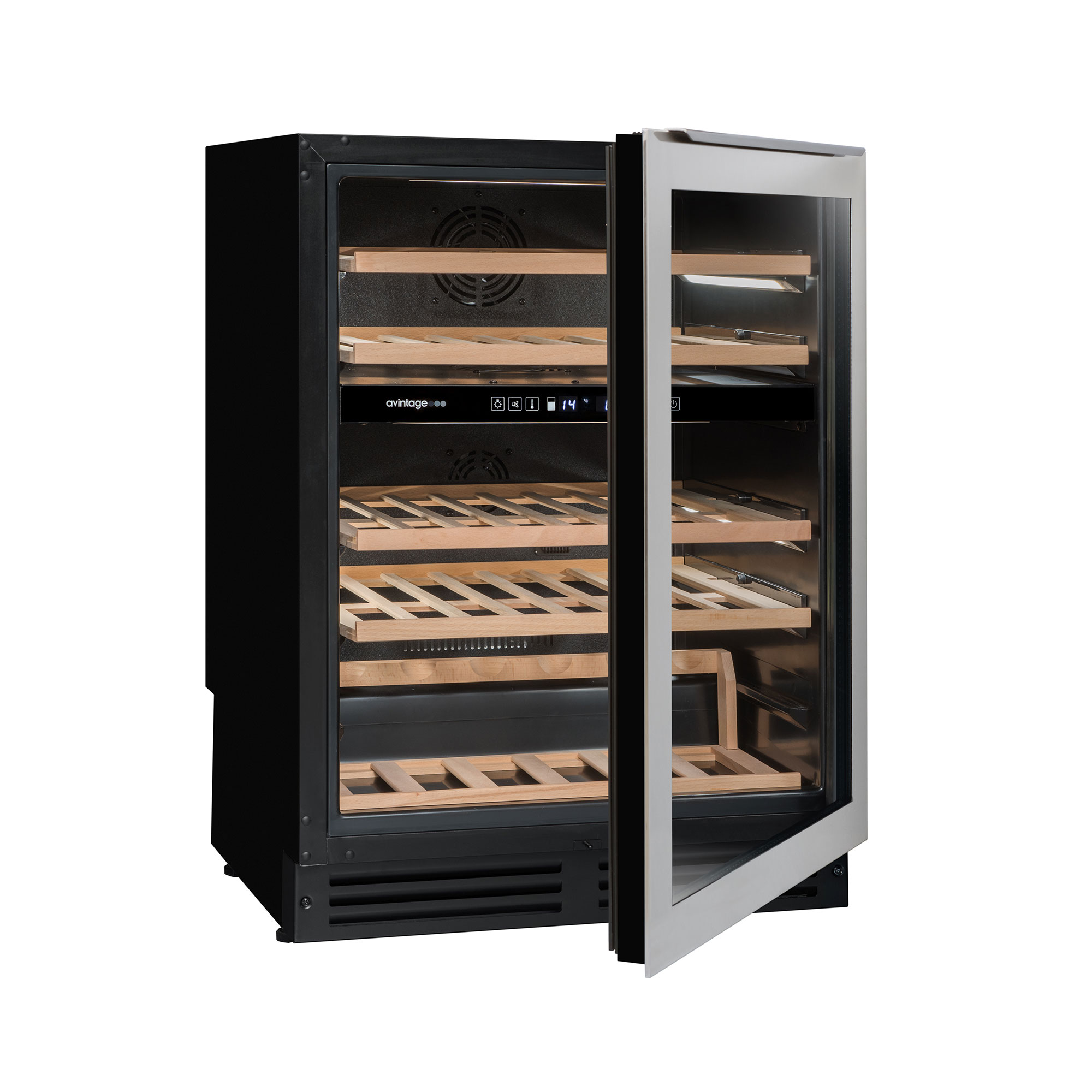 Hladnjak za vino AVU54TDZX1 je dvozonski, što znači da se dvije zone mogu zasebno regulirati. Možete